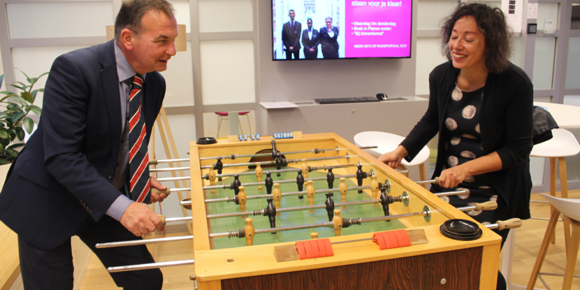 Martin en Patricia vermaken zich met een potje tafelvoetbal